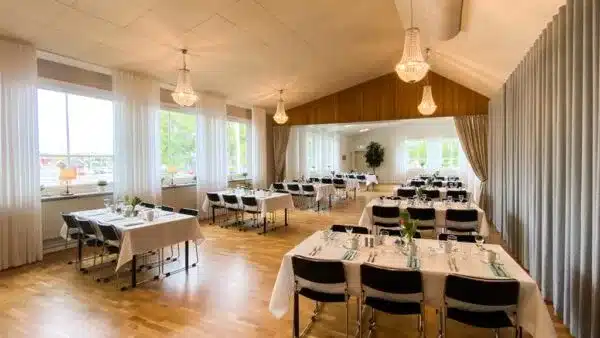 Lokalen vi erbjuder för bröllopsfirande är en rymlig loge med plats för 50-180 gäster. Vi tar bara en bröllopsbokning per vecka och ger tillgång till lokalen från torsdag till måndag.